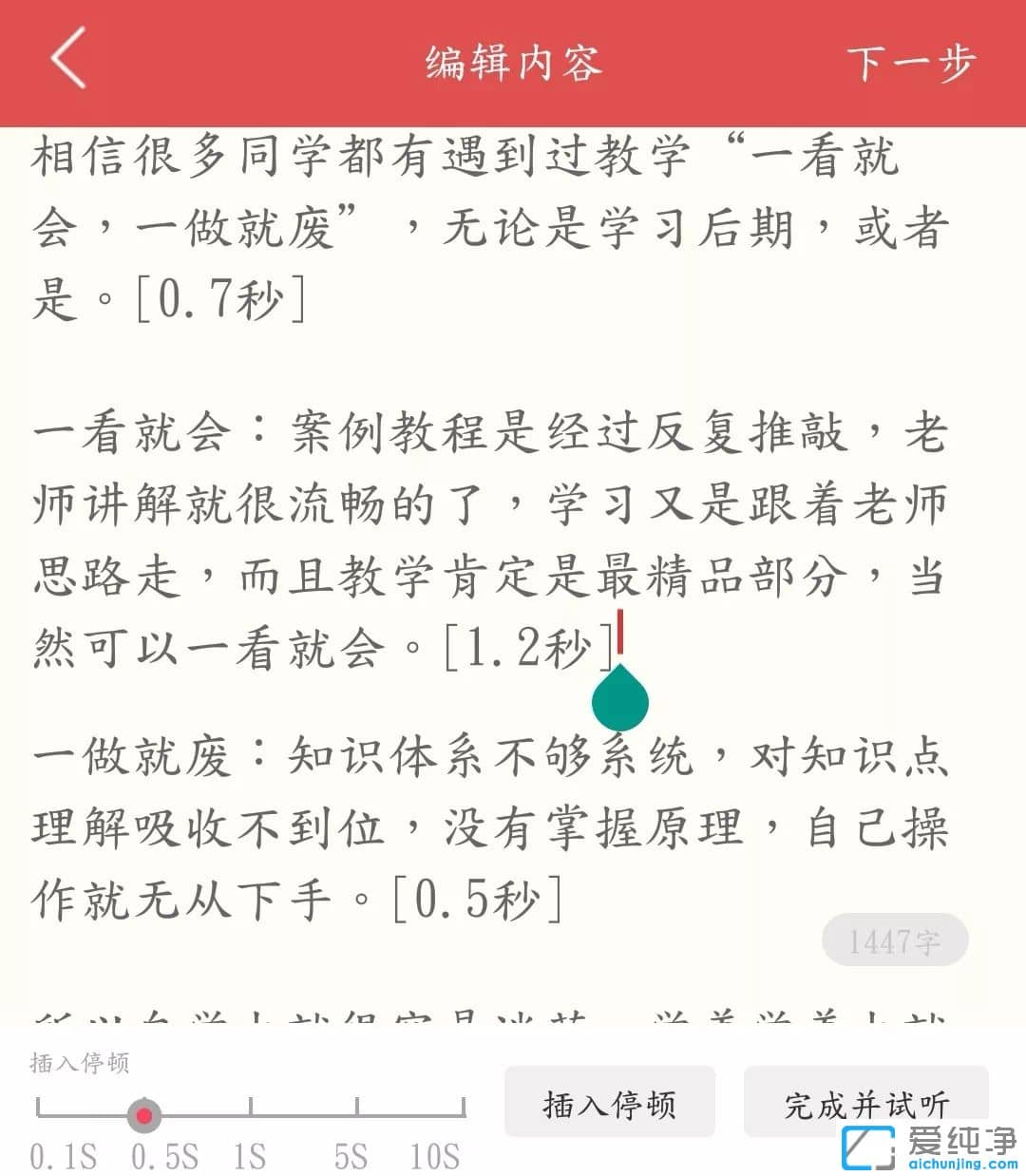 此外这款应用还有一个实用的功能,在编辑文字内容时,可以主动插入停顿,达到更加真人的感觉。